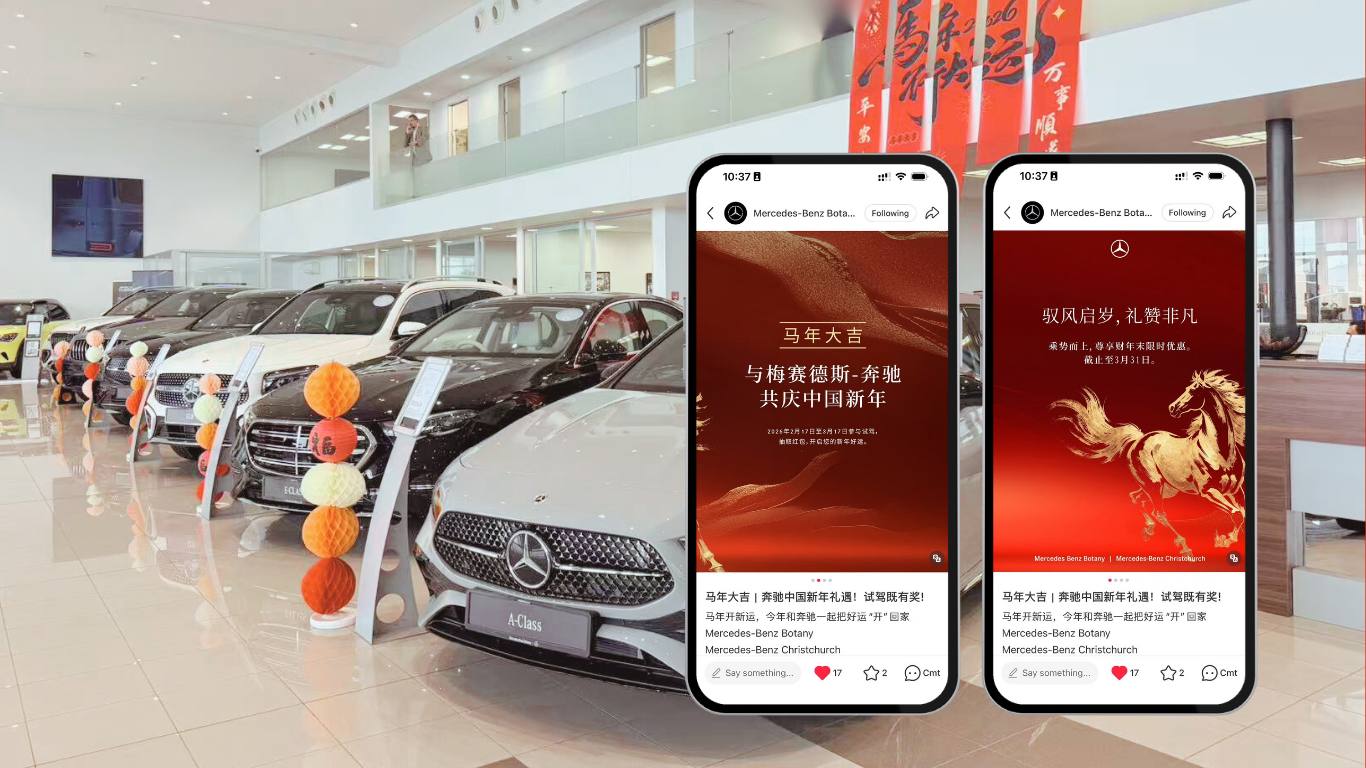 The campaign increased visibility among Auckland’s Chinese community, strengthened engagement on Rednote, and enhanced the dealership’s presence during Chinese New Year. The integrated approach successfully combined retail experience design with Chinese digital marketing in NZ.